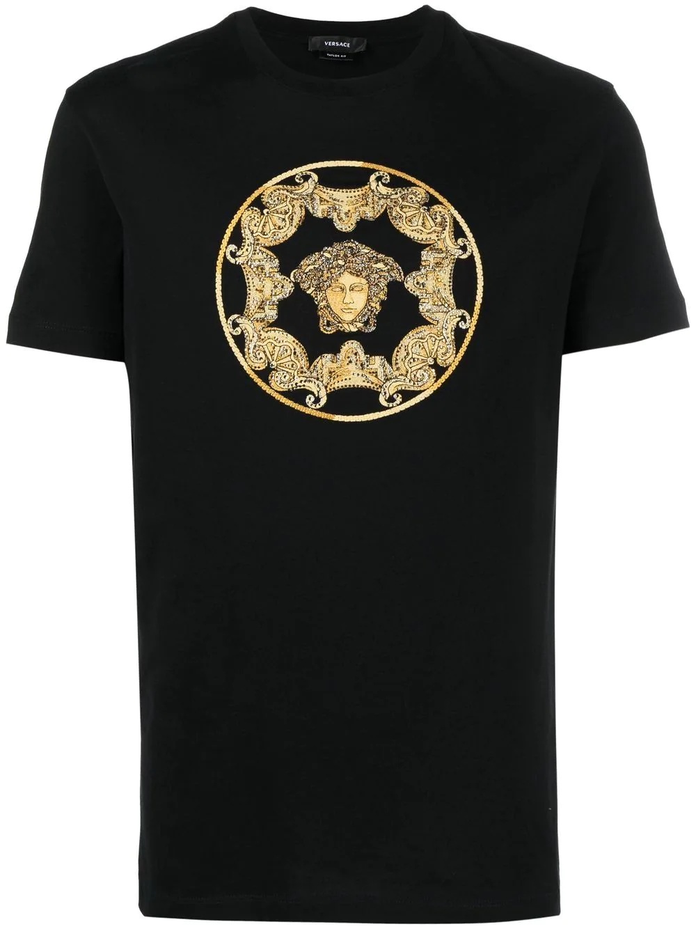 Medusa Head organic cotton T-shirt Highlights - Black/gold-tone - Organic cotton - Jersey knit - Medusa head motif - Crew neck - Short sleeves - Straight hem Imported Composition Organic Cotton 100% SIZE & FIT Model measurements Height 6 ft 1 in(1.85 m) Bust/Chest 37.79 in(96 cm) Hips 37.4 in(95 cm) Waist 30.7 in(78 cm) FittingInformation This piece fits true to size. We recommend you get your regular size Cut for a slim fit Made with a mid-weight fabric Washing instructions Hand Wash