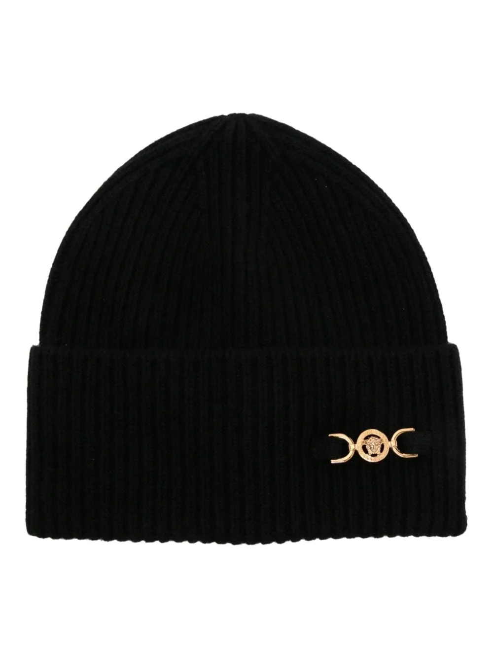 Medusa '95 ribbed beanie Highlights - Black - Wool-cashmere blend - Ribbed knit - Medusa head plaque - Turn-up hem - Pull-on style - Gold-tone hardware Made in Italy Composition Wool 70%, Cashmere 30% Washing instructions Hand Wash