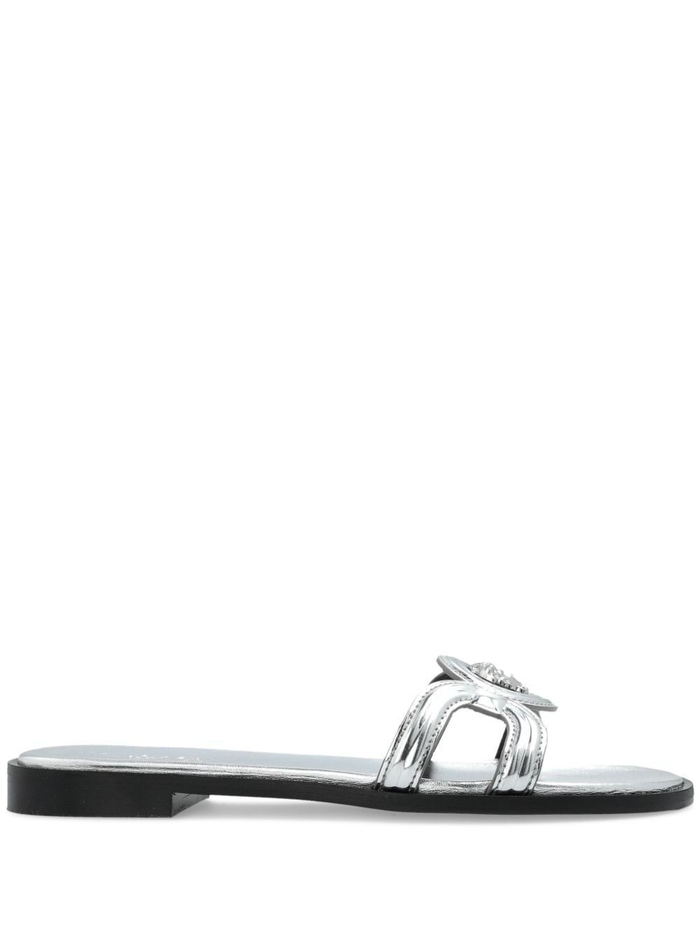 Medusa Head sandals Highlights - Silver - Slip-on design - Open toe - Flat sole Made in Italy Composition Outer: Calf Leather 100% Sole: Calf Leather 100% Lining: Lamb Skin 100%, Goat Skin 100%