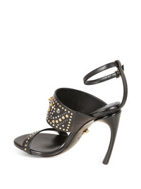 Medusa heeled sandals Highlights - Black - Decorative studs - Stiletto heel - Ankle buckle fastening - Gold-tone hardware Made in Italy Composition Outer: Calf Leather 100% Lining: Calf Leather 100% Sole: Calf Leather 100% SIZE & FIT Measurement HEEL 4.13 in(10.5 cm)