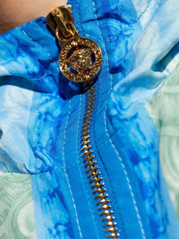 Medusa-logo zip-fastening jacket Highlights - Blue and multicolour - All-over graphic print - Zip fastening - Hooded - Elasticated cuffs - Elasticated hem Made in Italy Composition Polyester 100% Washing instructions Read Manufacturer Guidelines