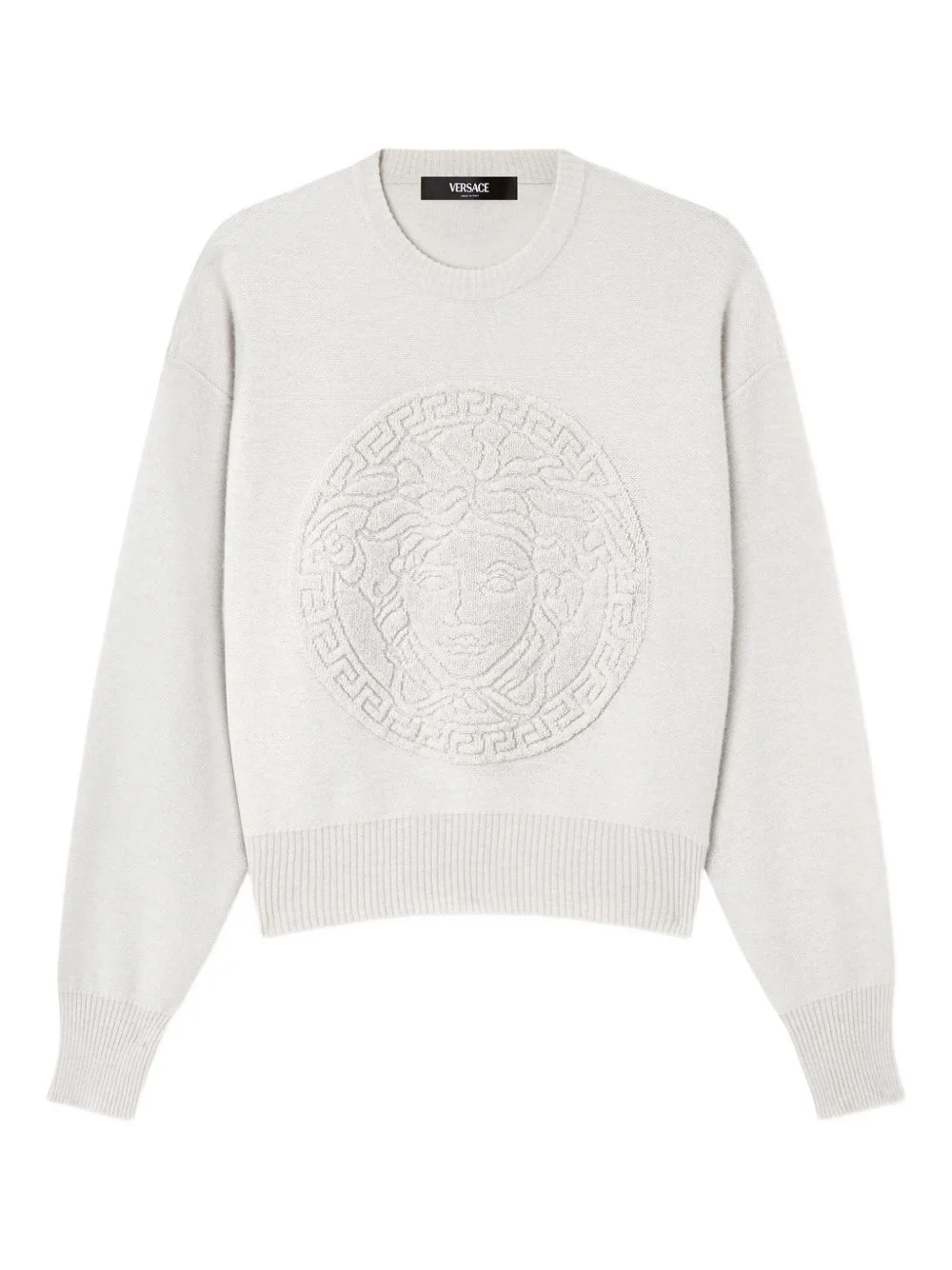 Medusa-motif crew-neck sweater Highlights - Light grey - Medusa motif - Crew neck - Ribbed hem and cuffs - Long sleeve Imported Composition Wool 70%, Cashmere 30% Washing instructions Read Manufacturer Guidelines