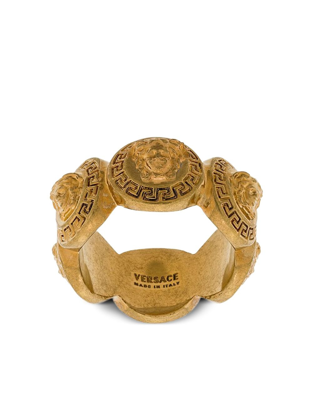 Tribute Medusa ring Highlights - Medusa? i barely knew 'er! well maybe it was time you were introduced. this gold-tone brass medusa motif ring from versace is glad to make your acquaintance. what do you think? featuring a medusa head logo embellishment and greek key detailing. Made in Italy