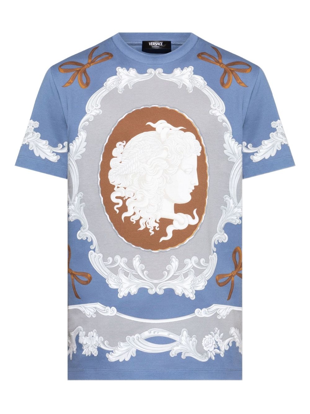 Medusa-motif T-shirt Highlights - Light blue - Medusa graphic - Ornate detailing - Contrasting brown elements - Round neck - Short sleeves Made in Italy Composition Cotton 100%