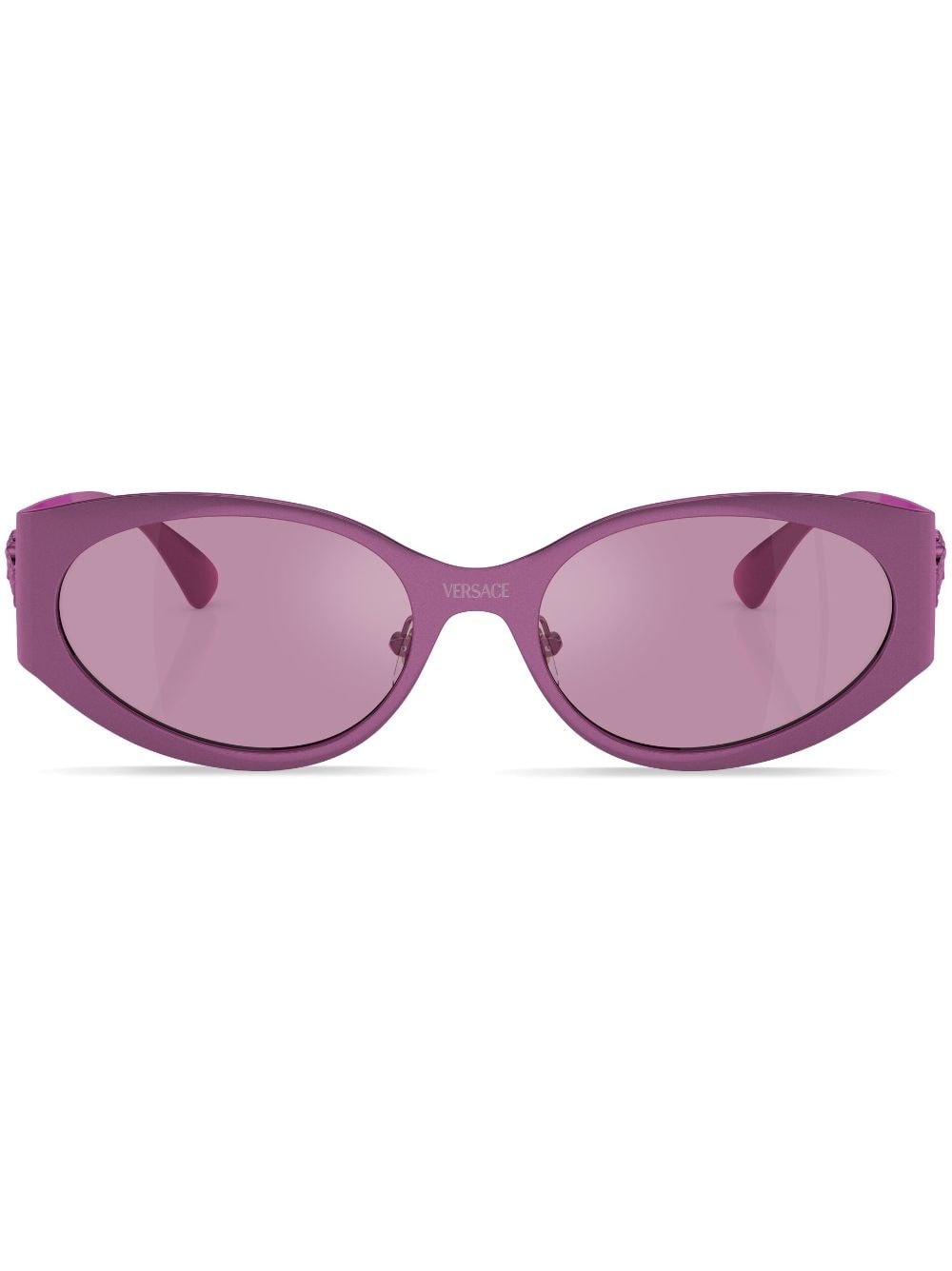 Medusa oval-frame sunglasses Highlights - Fuchsia pink - Metal - Tonal hardware - Oval frame - Tinted lenses - Medusa logo plaque at the arm - Straight arms - Curved tips - These glasses come with a protective case. Made in Italy Composition Steel 100%