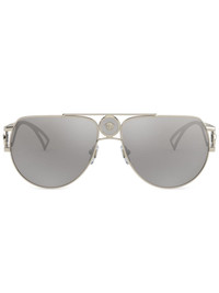 Medusa pilot-frame sunglasses Sunny days ahead? Master bright mornings in style with these Medusa pilot-frame sunglasses from Versace Eyewear. No squinting over here. Highlights - Gold-tone - Metal - Medusa head motif - Double bridge - Pilot frame - Nose pads - Mirrored lenses - Oversize frame - Curved tips - These glasses come with a protective case. Made in Italy Composition Metal 100% SIZE & FIT Measurement Arm Length 5.51 in(14 cm) Bridge Width 0.59 in(1.5 cm) Lens Diameter 2.36 in(6 cm)