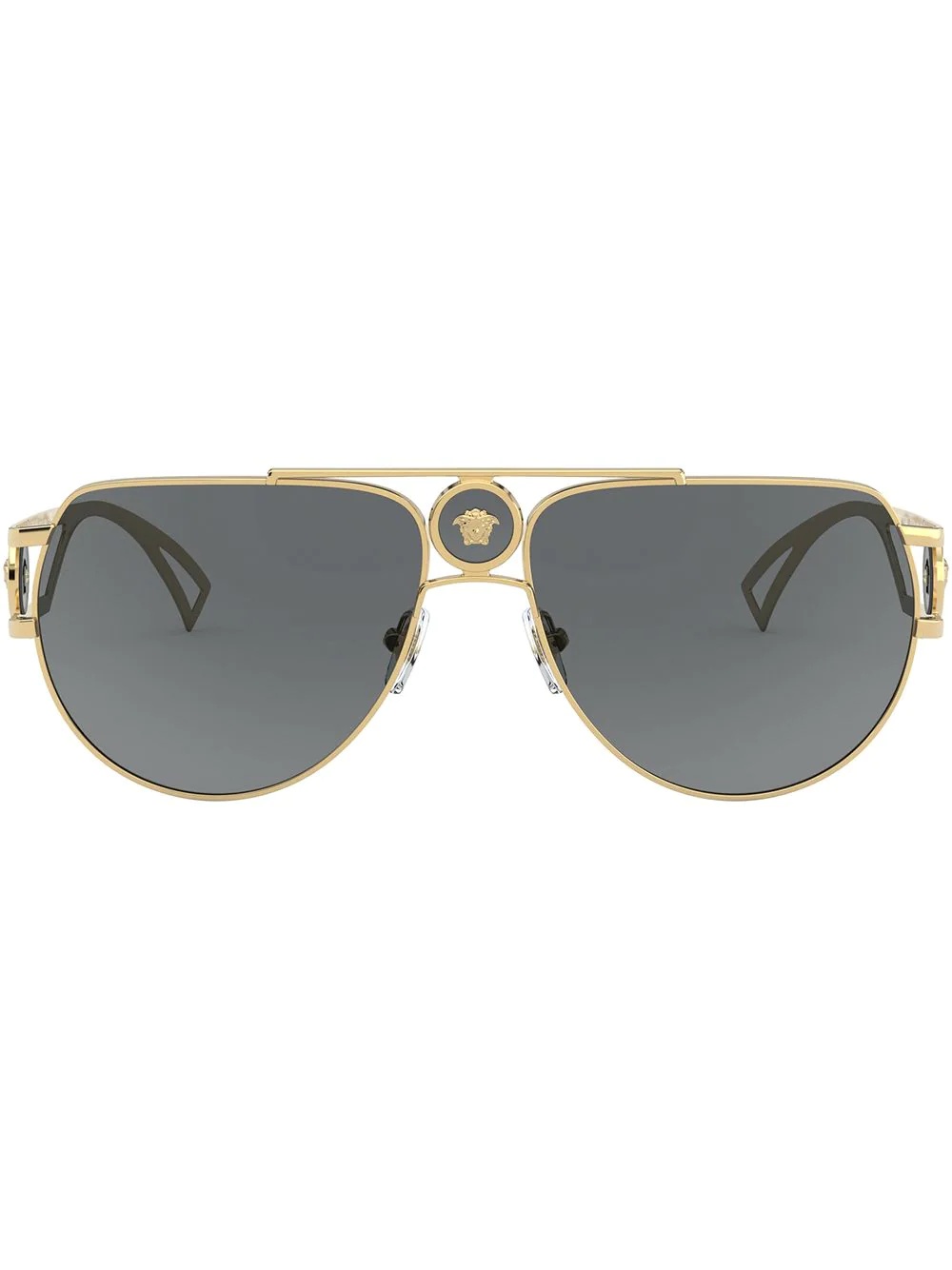 Medusa pilot-frame sunglasses Sunny days ahead? Master bright mornings in style with these Medusa pilot-frame sunglasses from Versace Eyewear. No squinting over here. Made in Italy Composition Metal 100%, Plastic 100% SIZE & FIT Measurement Arm Length 5.51 in(14 cm) Bridge Width 0.59 in(1.5 cm) Lens Diameter 2.36 in(6 cm)