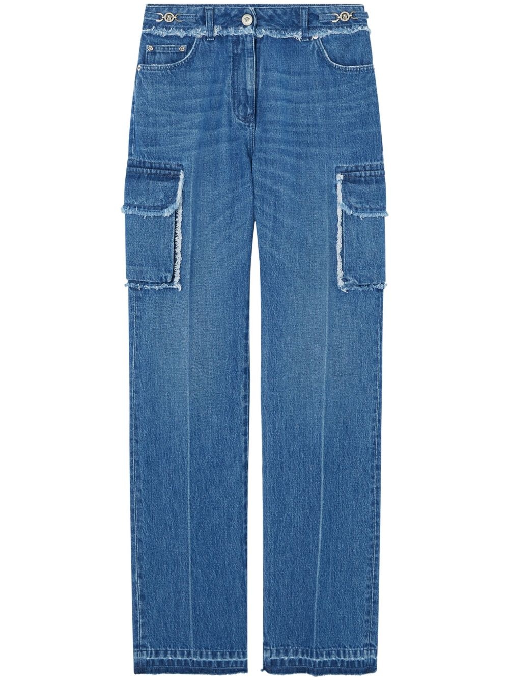 frayed cargo jeans Highlights - Blue - Concealed fly and button fastening - Classic five pockets - Two side cargo pockets - Fringed edge Imported Composition Cotton 100%