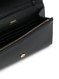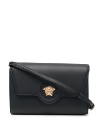La Medusa crossbody bag Inspired by Greek mythology, Versace's use of the Medusa head is now synonymous to the brand. Featured at the front of this crossbody bag in gold-tone hardware, it symbolises the brand's opulent style and the ancient figure's power, strength and beauty. Highlights - Medusa-plaque crossbody bag from versace featuring black, leather, medusa plaque detail, gold-tone hardware, foldover top, main compartment and single shoulder strap. Made in Italy Composition Outer: Leather 100% SIZE & FIT Model measurements Height 5 ft 10 in(1.77 m) Bust/Chest 32.28 in(82 cm) Hips 35.03 in(89 cm) Waist 25.19 in(64 cm) Measurement DEPTH 1.57 in(4 cm) HEIGHT 6.29 in(16 cm) STRAP 21.65 in(55 cm) WIDTH 8.66 in(22 cm)