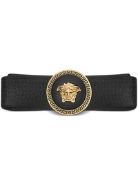 Medusa-plaque decorative-stitch hairpin Highlights - Black - Gold-tone hardware - Medusa plaque detail - Decorative stitching - Slip-on style Made in Italy Composition Viscose 72%, Silk 28%