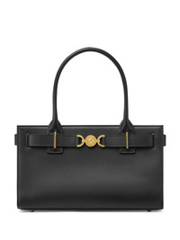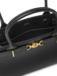 Medusa '95 tote bag Highlights - Black - Calf leather - Medusa plaque detail - Logo stamp to the rear - Gold-tone hardware - Concealed magnetic fastening - Two rolled top handles - Main compartment - Internal slip pocket - Internal logo stamp - Metal feet Made in Italy Composition Outer: Calf Leather 100% SIZE & FIT Measurement DEPTH 3.93 in(10 cm) WIDTH 12.2 in(31 cm) HEIGHT 7.48 in(19 cm)
