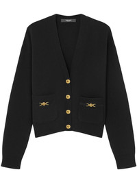 Medusa-plaque V-neck cardigan Highlights - Black - Virgin wool-cashmere blend - Knitted construction - Medusa head motif - Gold-tone hardware - Front button fastening - V-neck - Two patch pockets - Long sleeves - Straight hem Made in Italy Composition Virgin Wool 70%, Cashmere 30% SIZE & FIT FittingInformation Designed to be unstructured, offering a loose fit throughout Made with a midweight knit, this piece offers some stretch