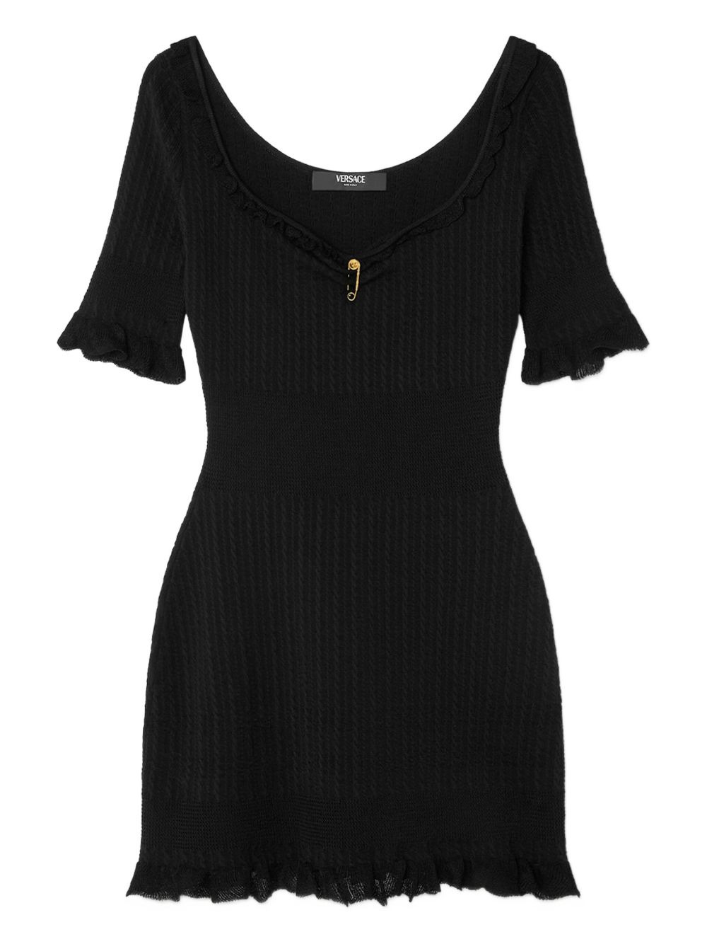 Medusa Safety Pin ribbed-knit mini dress Highlights - Black - Ribbed knit - Ruffled trim - Short sleeves Made in Italy Composition Virgin Wool 54%, Viscose 27%, Nylon 17%, Elastane 2% Washing instructions Read Manufacturer Guidelines