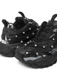 Mercury M_VS_02 sneakers Highlights - Black - Faux leather - Panelled design - Mesh panelling - Crystal embellishment - Logo print to the side - Signature greca detailing - Round toe - Front lace-up fastening - Double pull-tab at the opening - Eva midsole - Branded insole - Chunky rubber lug sole Made in Italy Composition Outer: Crystal 100%, Polyester 100% Lining: Polyester 100%, Calf Leather 100% Sole: Rubber 75%, Recycled Polyethylene vinyl acetate (PEVA) 25%
