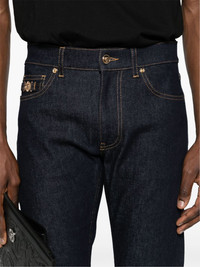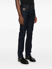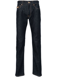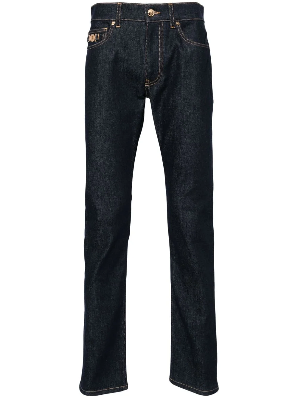 mid-rise slim-fit jeans Highlights - Indigo blue - Cotton blend - Denim - Medusa plaque detail - Logo patch to the rear - Mid-rise - Concealed fly and button fastening - Classic five pockets - Slim cut Made in Italy Composition Cotton 88%, Polyester 11%, Elastane 1% SIZE & FIT Model measurements Height 6 ft 2 in(1.89 m) Bust/Chest 39.76 in(101 cm) Hips 37.4 in(95 cm) Waist 29.92 in(76 cm) FittingInformation Designed for a slim fit, these jeans offer a comfortable fit that sits just away from the leg Constructed from stretch denim, this piece offers a stretch fit with durability This piece fits true to size – take your usual size