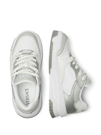 Odissea sneakers Highlights - Medium grey/white - Calf leather - Smooth grain - Signature greca detailing - Logo-embroidered tongue - Contrasting branded heel counter - Logo at the sole - Colour-block panelled design - Round toe - Perforated toebox - Front lace-up fastening - Branded insole - Chunky rubber sole Made in Italy Composition Outer: Calf Leather 100% Lining: Nylon 100%, Polyester 100%, Calf Leather 100% Sole: Rubber 100%
