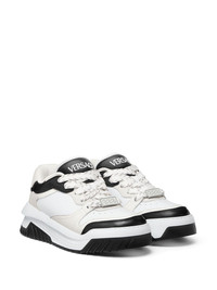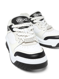 Odissea sneakers Highlights - White/black - Calf leather - Colour-block panelled design - Branded heel counter - Logo-embroidered tongue - Signature greca detailing - Front lace-up fastening - Perforated toebox - Round toe - Branded insole - Chunky rubber sole Made in Italy Composition Leather 100%