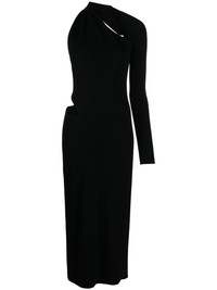 one-shoulder cut-out midi dress This midi dress showcases Versace's statement aesthetic. The all-black one-shoulder silhouette is punctuated with cut-out detailing, reflecting a graphic look. Made in Italy Composition Viscose 95%, Spandex/Elastane 5% SIZE & FIT Model measurements Height 5 ft 10 in(1.79 m) Bust/Chest 31.49 in(80 cm) Hips 35.03 in(89 cm) Waist 23.62 in(60 cm) Measurement SLEEVE LENGTH 22.04 in(56 cm) HIPS 35.43 in(90 cm) LENGTH 41.33 in(105 cm) WAIST 28.34 in(72 cm) BUST 28.34 in(72 cm) FittingInformation This piece fits true to size. We recommend you get your regular size Designed for a close fit at the bust, waist and hips Made with a mid-weight stretch fabric Washing instructions Dry Clean Only