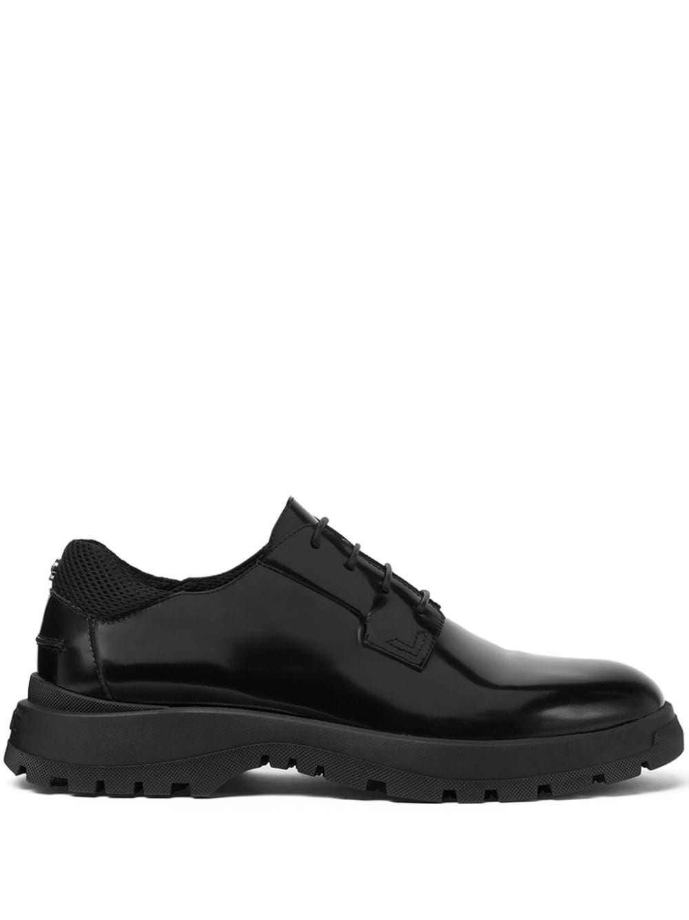 patent leather derby shoes Highlights - Black - Calf leather - Patent finish - Mesh panelling - Front lace-up fastening - Round toe - Branded leather insole - Ridged rubber sole Made in Italy Composition Sole: Thermoplastic Polyurethane (TPU) 100% Lining: Polyester 100%, Calf Leather 100% Outer: Calf Leather 100%