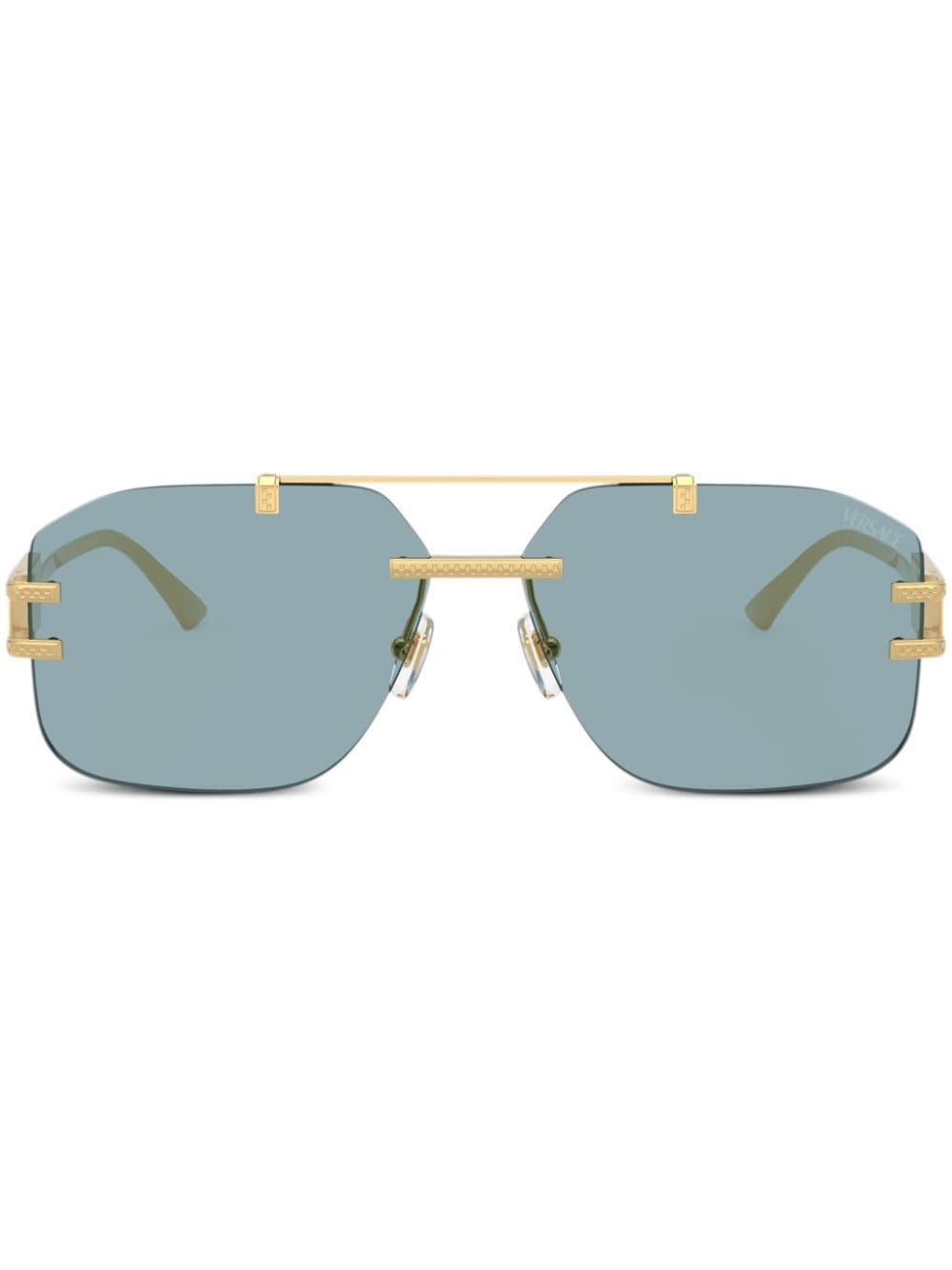 pilot-frame sunglasses Highlights - Gold-tone - Pilot frame - Metallic effect - Double bridge - Blue tinted lenses - Straight arms - Debossed detailing - Logo plaque at the arm - Curved tips - Nose pads - These glasses come with a protective case. Made in Italy Composition Metal 100%
