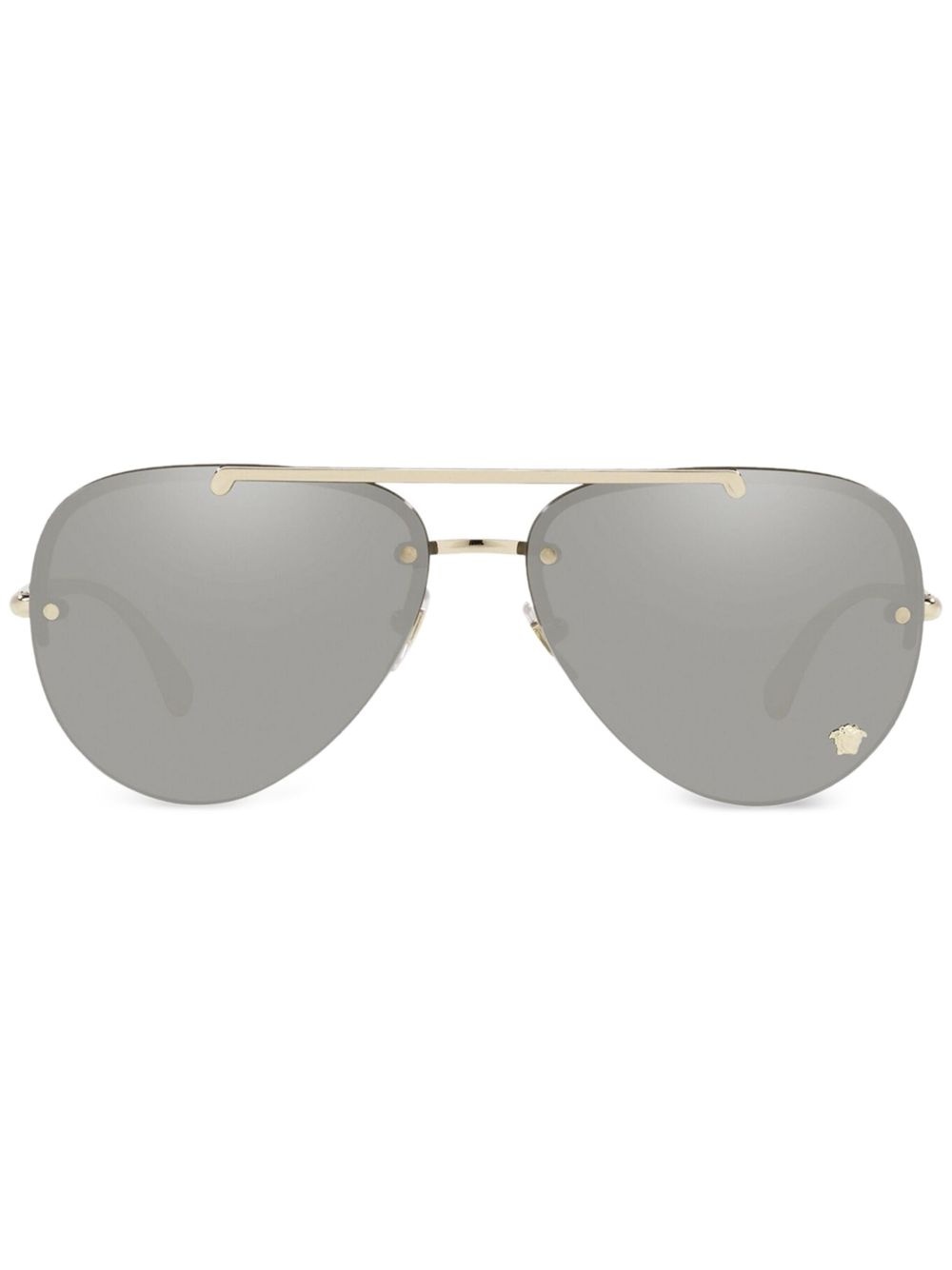 pilot-frame sunglasses Highlights - Gold-tone - Metal - Pilot frame - Mirrored lenses - Double bridge - Nose pads - Straight arms - Curved tips - These glasses come with a protective case. Made in Italy Composition Metal 100% SIZE & FIT Measurement Arm Length 5.51 in(14 cm) Bridge Width 0.55 in(1.4 cm) Lens Diameter 2.36 in(6 cm)