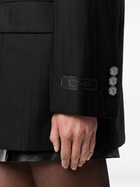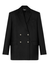 pinstripe double-breasted blazer Highlights - Black - Pinstripe pattern - Double-breasted closure - Buttoned cuffs - Structured shoulders - Wool material Imported Composition Outer: Virgin Wool 100% Lining: Cupro 100% Washing instructions Read Manufacturer Guidelines