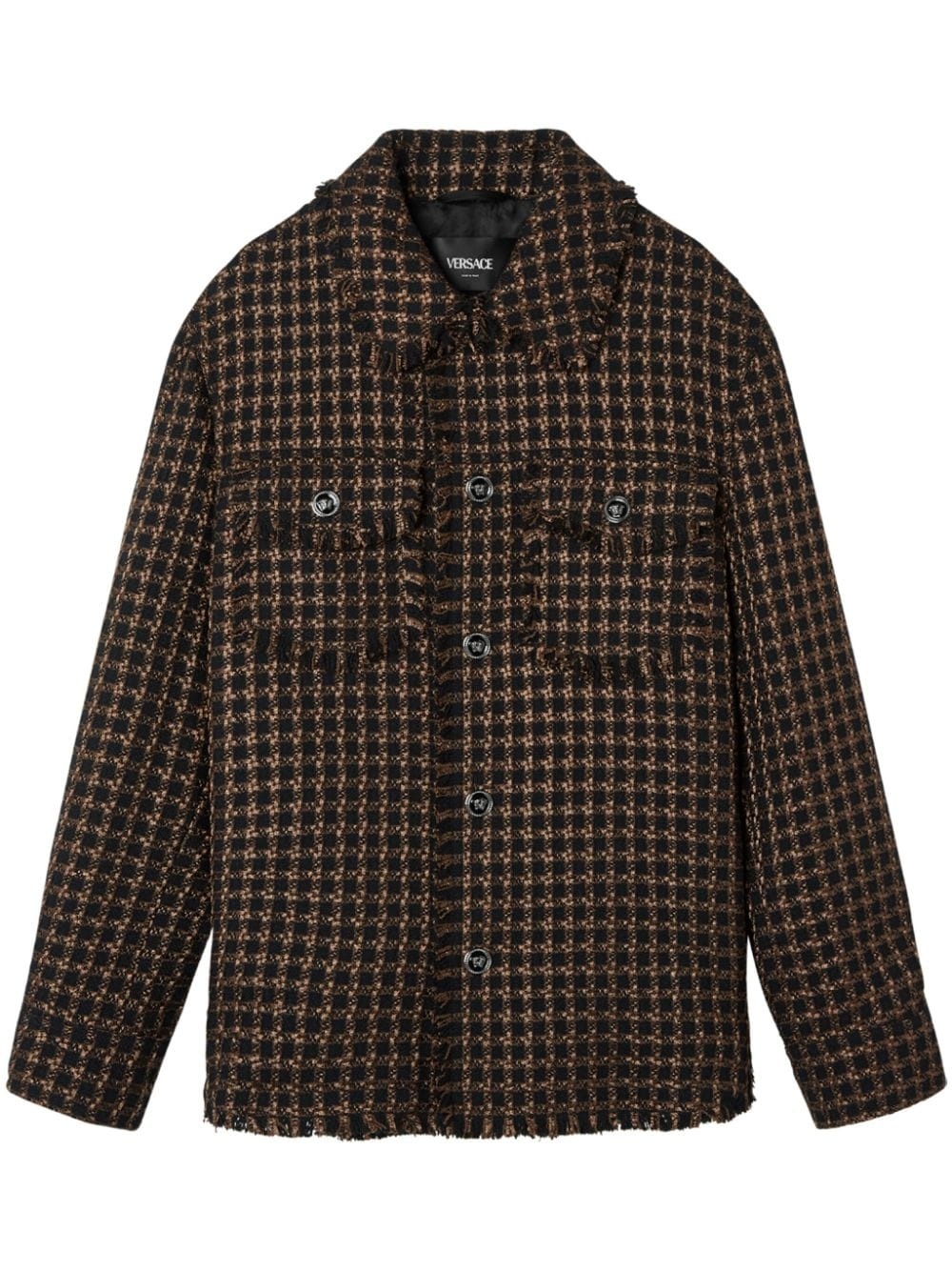 plaid shirt jacket Highlights - Brown/black Made in Italy Composition Outer: Virgin Wool 48%, Viscose 46%, Nylon 6% Lining: Cotton 100%, Cupro 100%