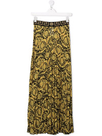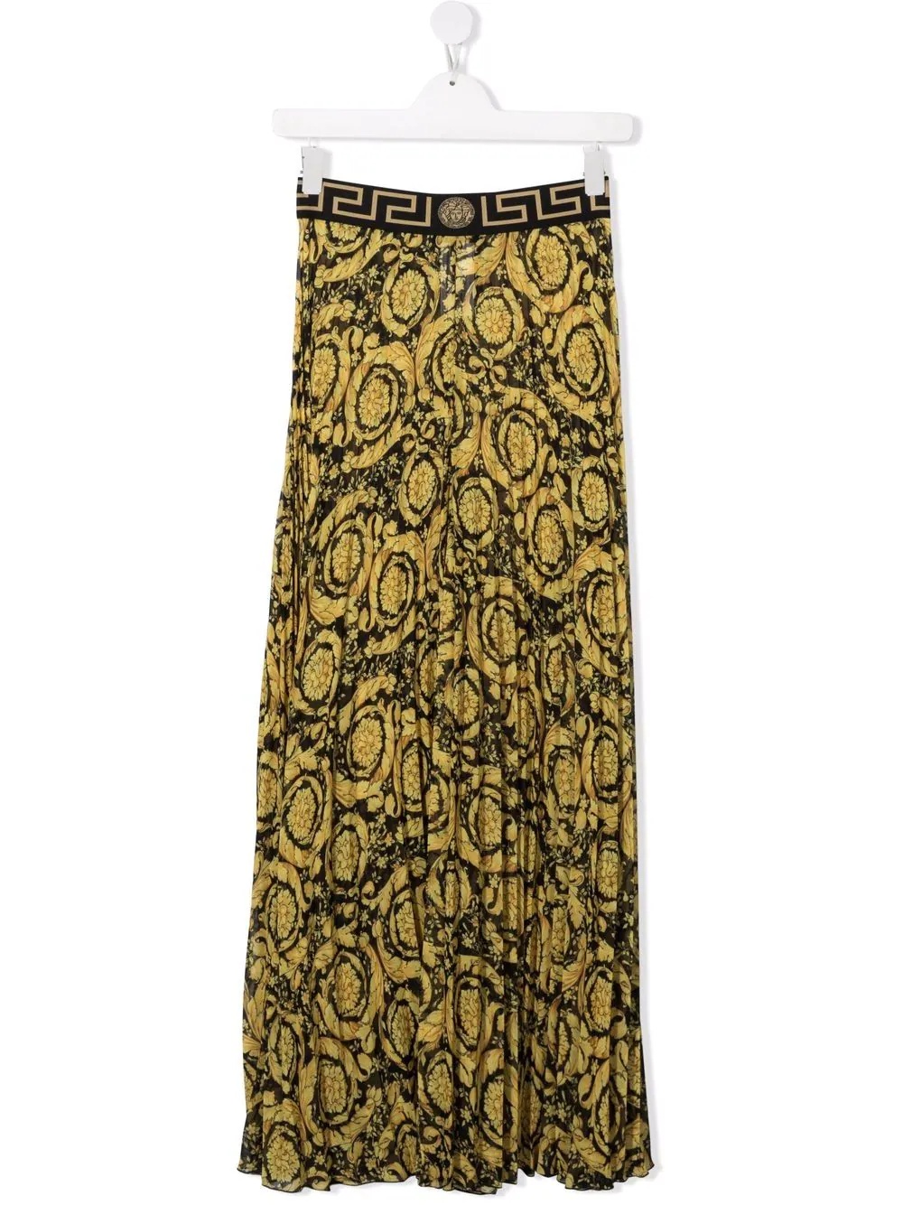 pleated floral baroque-print skirt black/yellow fully pleated baroque-pattern print all-over floral print signature Greca detailing Medusa Head motif elasticated waistband maxi skirt Made in Italy Composition Polyester 100% Washing instructions Dry Clean Only