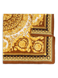 printed scarf Highlights - Golden brown - Square shape - Contrasting border - Handkerchief hem Made in Italy Composition Silk 100% SIZE & FIT Measurement LENGTH 35.43 in(90 cm) WIDTH 35.43 in(90 cm)