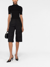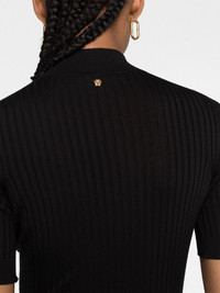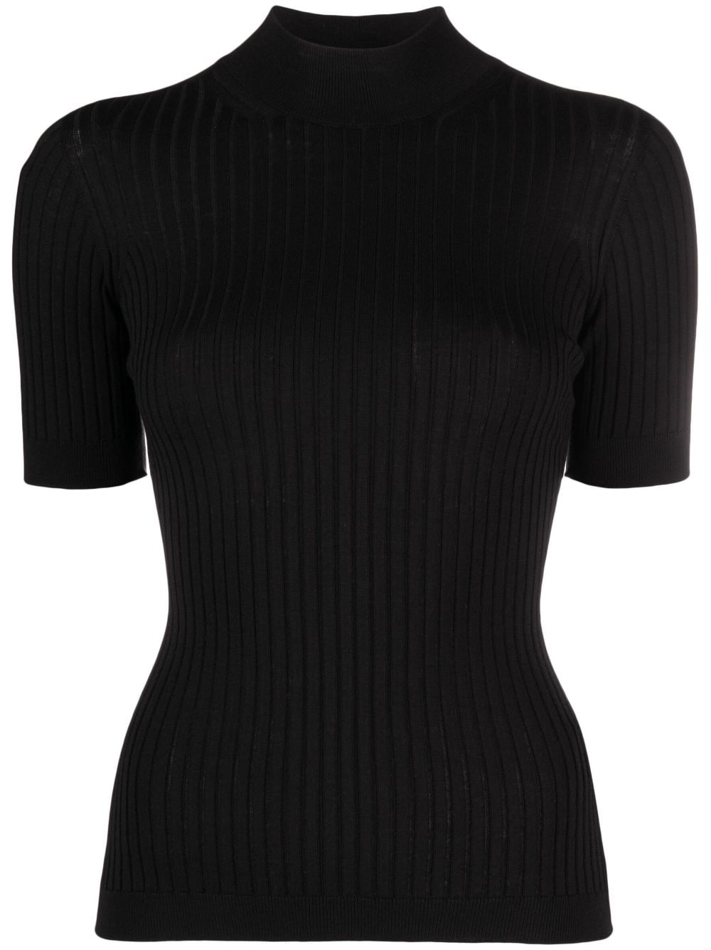 ribbed-knit short-sleeve top Highlights - Black - Virgin wool - Ribbed knit - High neck - Short sleeves - Straight hem Made in Italy Composition Virgin Wool 100% SIZE & FIT Model measurements Height 5 ft 11 in(1.8 m) Bust/Chest 31.49 in(80 cm) Hips 35.82 in(91 cm) Waist 24.8 in(63 cm) FittingInformation Designed for a slim fit that sits just away from the body offering a close yet comfortable fit Made with a midweight knit, this piece offers some stretch This piece fits true to size – take your usual size Washing instructions Hand Wash