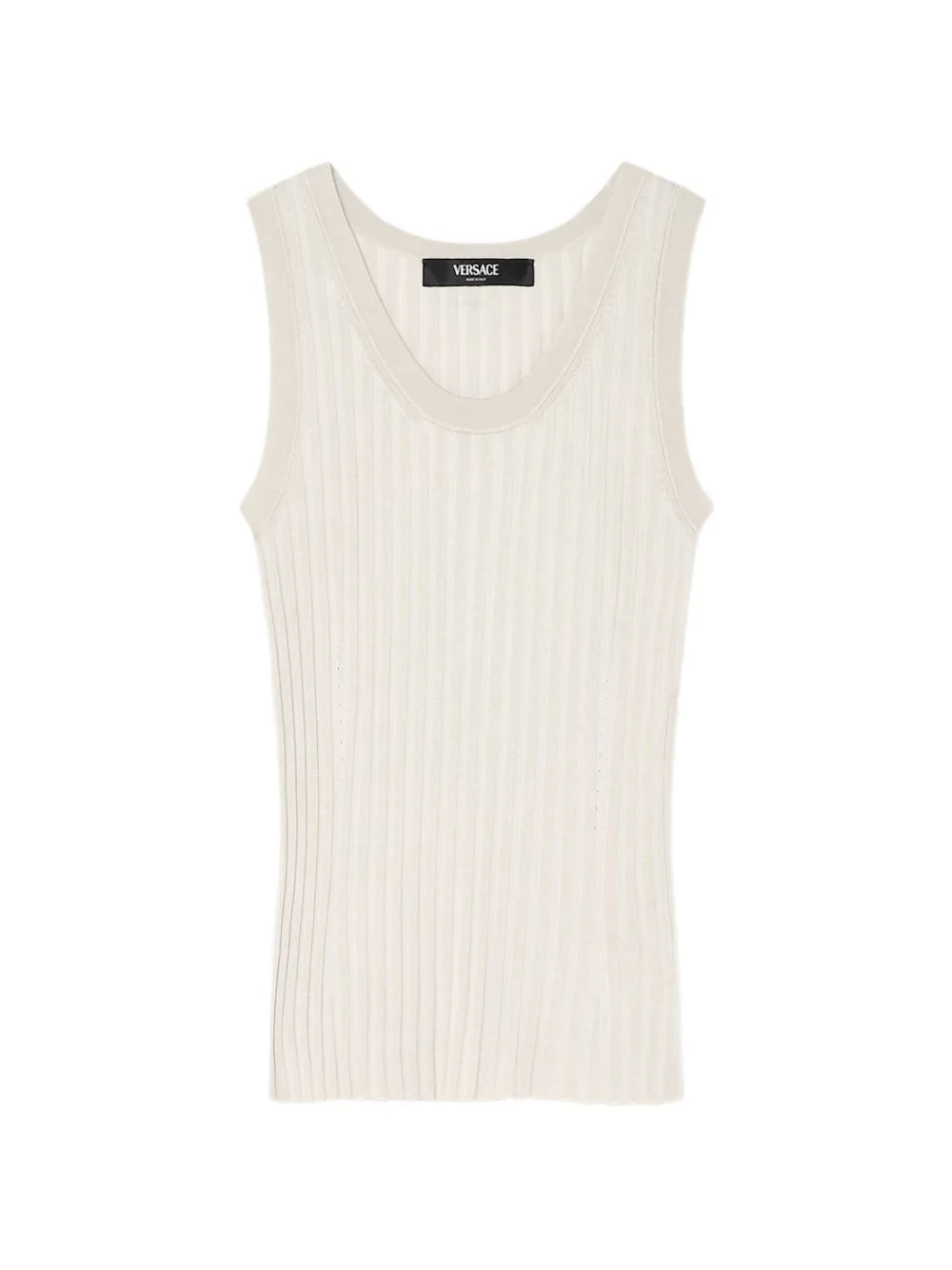 ribbed sleeveless tank top Highlights - White - Ribbed knit - Crew neck - Sleeveless Imported Composition Viscose 58%, Cotton 42% Washing instructions Read Manufacturer Guidelines