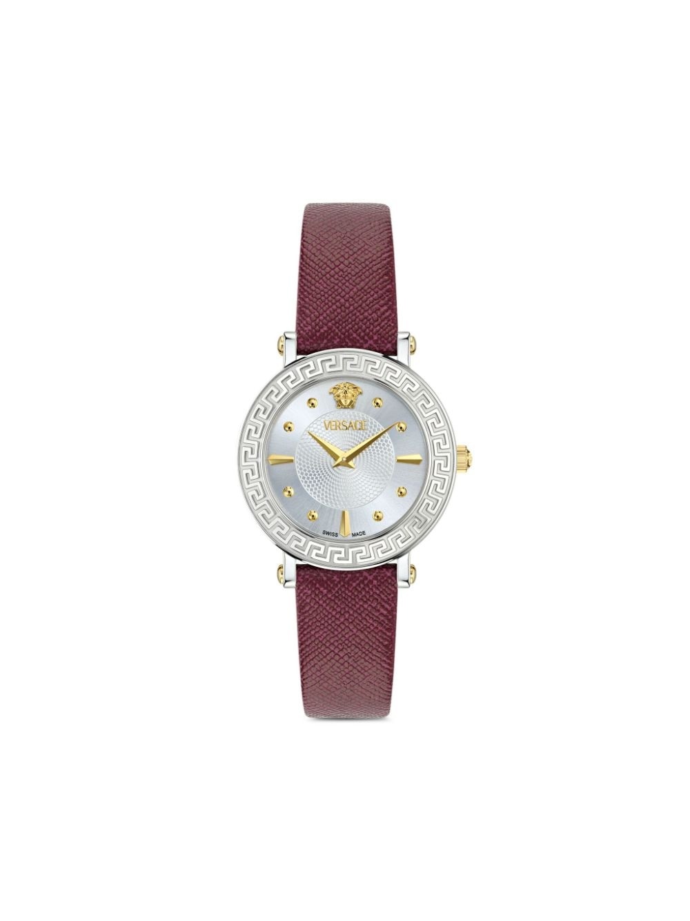 Greca Sphere 35mm Highlights - 35mm - Stainless steel case - Round face - Index dial - Baton hands - Signature greca detailing - Screw-down crown - Leather strap - Pin-buckle fastening - Quartz movement Imported SIZE & FIT Measurement DIAMETER 1.37 in(3.5 cm)