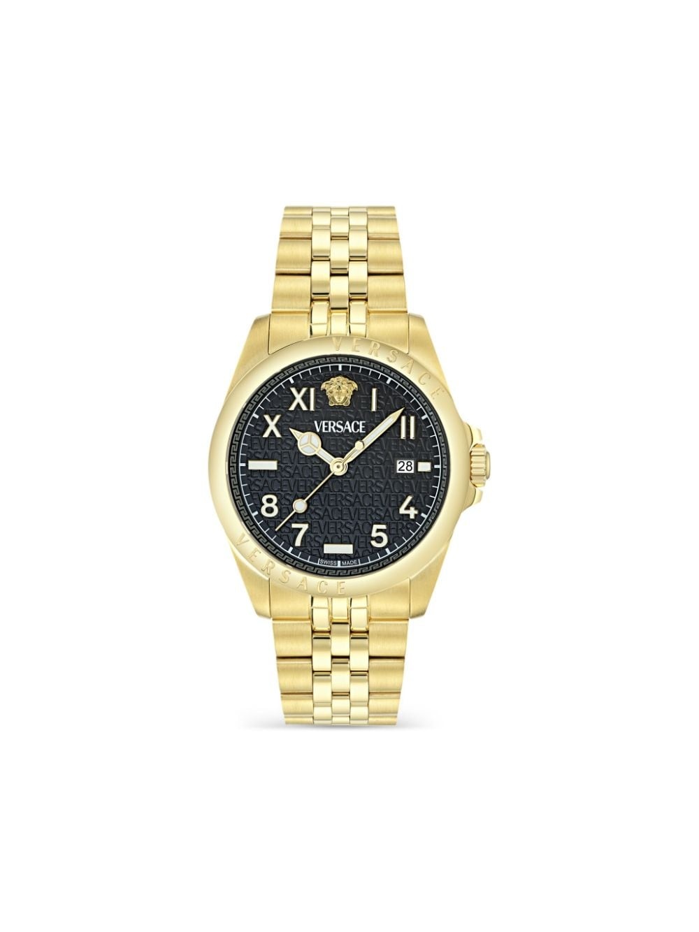 Anteo 41mm Highlights - 41mm - Gold-tone - Stainless steel - Round face - Mixed dial - Arrow hands - Date indication - Screw-down crown - Stainless steel link bracelet - Folding clasp - Quartz movement Imported Composition Sapphire Crystal 100%, stainless steel 100% SIZE & FIT Measurement DIAMETER 1.61 in(4.1 cm)