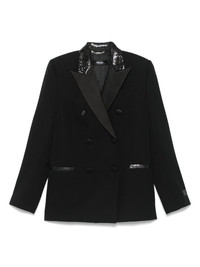 sequin-embellished blazer Highlights - Black - Double-breasted button fastening - Chest welt pocket - Two side welt pockets - Sequin embellishment Made in Italy Composition Outer: Metal 100%, Virgin Wool 100%, Silk 78%, Polyester 22% Lining: Viscose 74%, Polyester 26% SIZE & FIT Model measurements Height 5 ft 9 in(1.75 m) Bust/Chest 34.64 in(88 cm) Hips 36.61 in(93 cm) Waist 26.37 in(67 cm) FittingInformation Designed to be unstructured, offering a loose fit throughout The internal shoulder pads offer a structured shape Made from a midweight non-stretch fabric Washing instructions Dry Clean Only