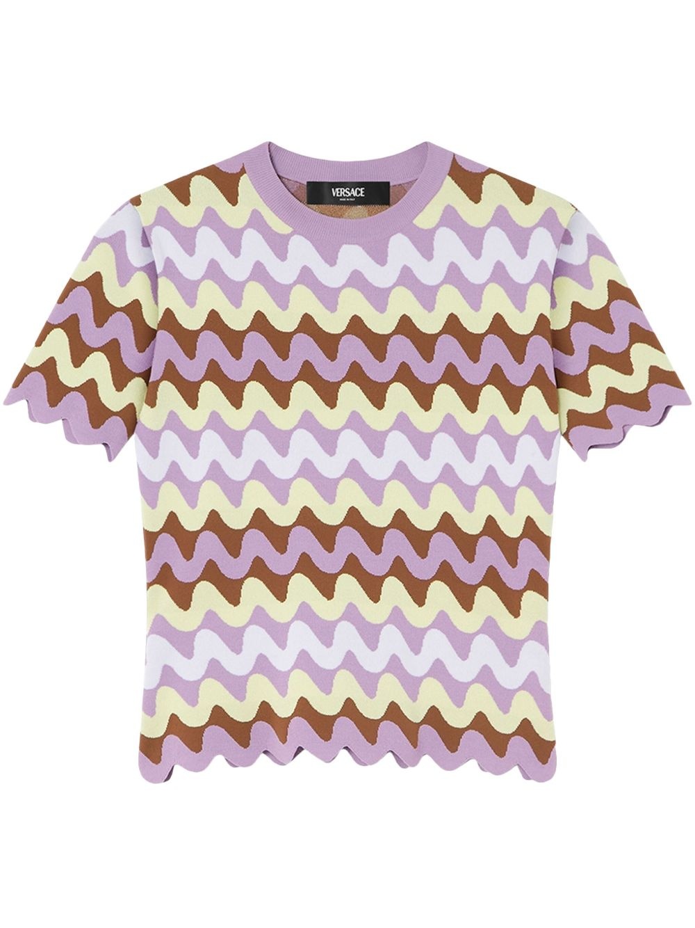 Wave jacquard knitted T-shirt Highlights - Purple - Crew neck - Zigzag embroidery - Straight hem Made in Italy Composition Viscose 64%, Nylon 23%, Polyester 13%