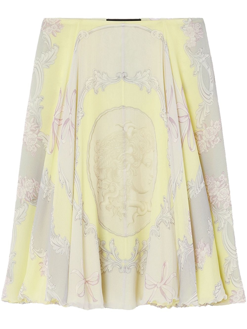 Cameo silk midi skirt Highlights - Yellow - Concealed side zip fastening - Internal slip dress - Medusa head motif Made in Italy Composition Lining: Acetate 75%, Silk 25% Outer: Silk 100%