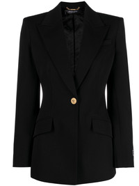 single-breasted wool blazer Highlights - Black - Stretch-wool - Medusa head motif - Logo-embossed buttons - Gold-tone buttons - Logo patch at the sleeve - Wide peak lapels - Front button fastening - Long sleeves - Buttoned cuffs - Chest welt pocket - Two front flap pockets - Straight hem Made in Italy Composition Outer: Wool 98%, Elastane 2% Lining: Cupro 58%, Viscose 42% SIZE & FIT Model measurements Height 5 ft 10 in(1.77 m) Bust/Chest 27.95 in(71 cm) Hips 33.85 in(86 cm) Waist 23.22 in(59 cm) FittingInformation Designed for a slim fit that sits just away from the body offering a close yet comfortable fit The vented hem offers movement at the rear Made from a midweight stretch fabric, this piece offers elasticity and flexibility when worn This piece fits true to size – take your usual size