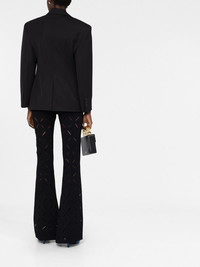 Single-breasted wool blazer Crafted from virgin wool, this Versace blazer is enhanced with logo branding at the cuff and is presented in a single-breasted profile. Made in Italy Composition Outer: Virgin Wool 100% Lining: Cupro 100% SIZE & FIT Model measurements Height 5 ft 11 in(1.8 m) Bust/Chest 32.67 in(83 cm) Hips 36.22 in(92 cm) Waist 24.4 in(62 cm) FittingInformation This piece fits true to size. We recommend you get your regular size Cut for a slim fit Made with a mid-weight non-stretch fabric Washing instructions Dry Clean Only