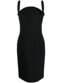 sleeveless midi dress Arriving in an embellishment-free black colourway, this Versace midi dress cuts a sharp, sculpted silhouette through its reinforced corset bodice and rounded wide shoulder straps. Highlights - Black - Sleeveless - Wide shoulder straps - Knee-length - Rear slit - Straight hem Made in Italy Composition Outer: Acetate 70%, Viscose 30% Lining: Polyamide 100%, Acetate 75%, Silk 25% SIZE & FIT Model measurements Height 5 ft 10 in(1.77 m) Bust/Chest 32.28 in(82 cm) Hips 35.03 in(89 cm) Waist 25.19 in(64 cm) Measurement HIPS 35.98 in(91.4 cm) LENGTH 40 in(101.6 cm) WAIST 27.99 in(71.1 cm) BUST 30 in(76.2 cm) Washing instructions Dry Clean Only