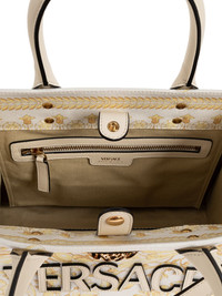 small La Medusa printed canvas tote bag Highlights - Off-white - Floral print - Top handle - Applique - Logo lettering - Detachable shoulder strap Made in Italy Composition Outer: Cotton 100%, Calf Leather 100% SIZE & FIT Measurement DEPTH 5.7 in(14.5 cm) HEIGHT 9.44 in(24 cm) WIDTH 11.61 in(29.5 cm)