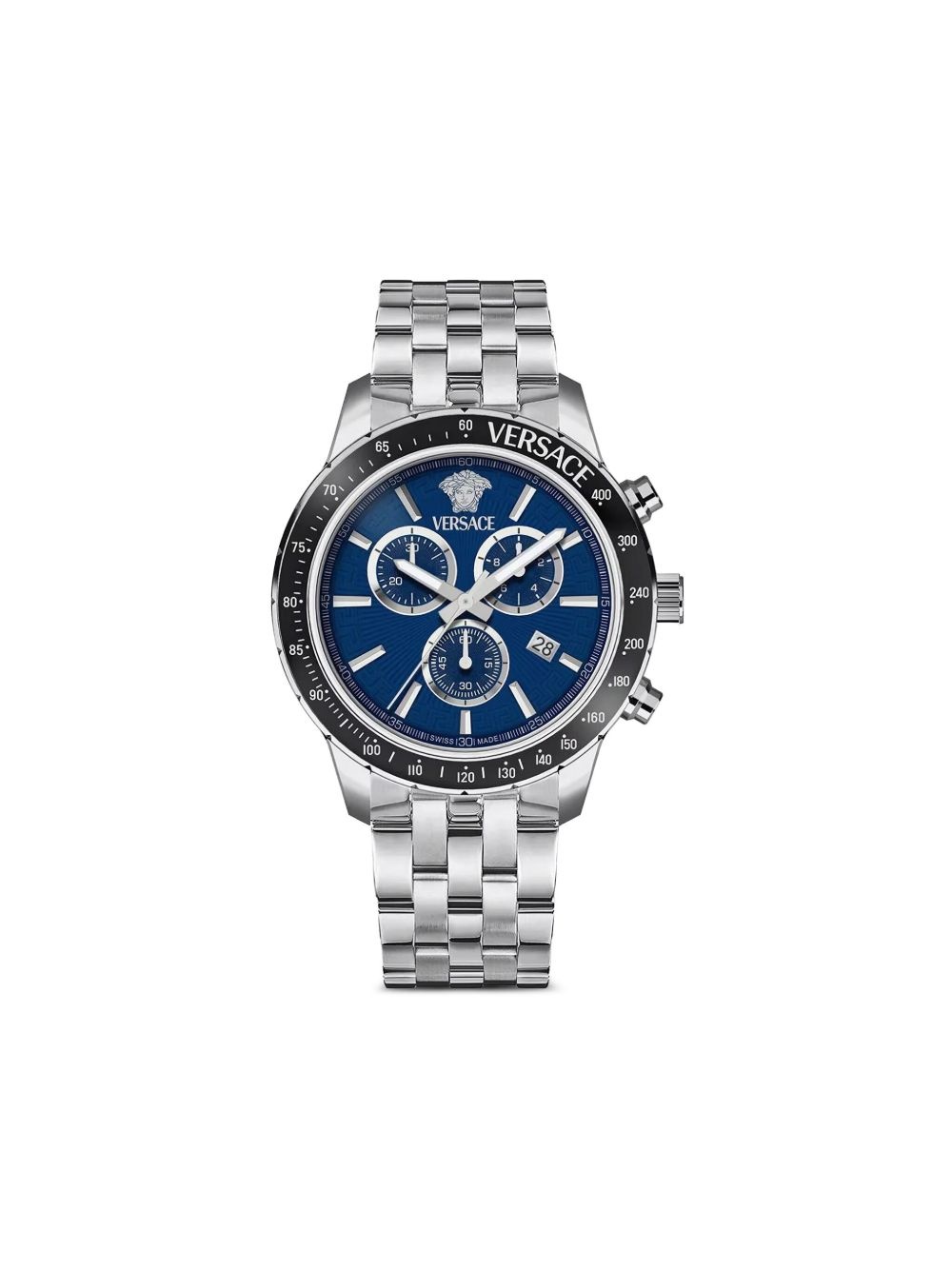 Sport Chrono 44mm Highlights - 44mm - Blue - Stainless steel - Round face - Geometric dial - Baton hands - Chronograph counters - Date indication - Quartz movement - Tachymeter scale - Two chronograph pushers - Screw-down crown - Adjustable link bracelet - Folding clasp - This item comes with a standard one-year warranty from the boutique. Imported Composition stainless steel 100% SIZE & FIT Measurement DIAMETER 1.73 in(4.4 cm) WIDTH 0.86 in(2.2 cm)