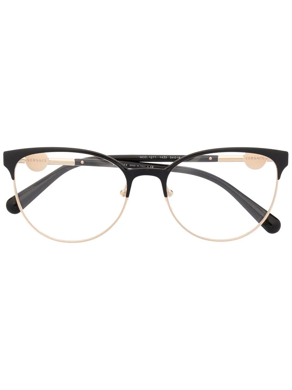 square-frame glasses gold/black metal gold-tone hardware Medusa-head motif square frame straight arms All glasses from FARFETCH are sold as non-prescription frames. Made in Italy Composition Metal 100%, Acetate 100% SIZE & FIT Measurement Arm Length 5.51 in(14 cm) Bridge Width 0.7 in(1.8 cm) Lens Diameter 2.12 in(5.4 cm) Total Width 5.35 in(13.6 cm)