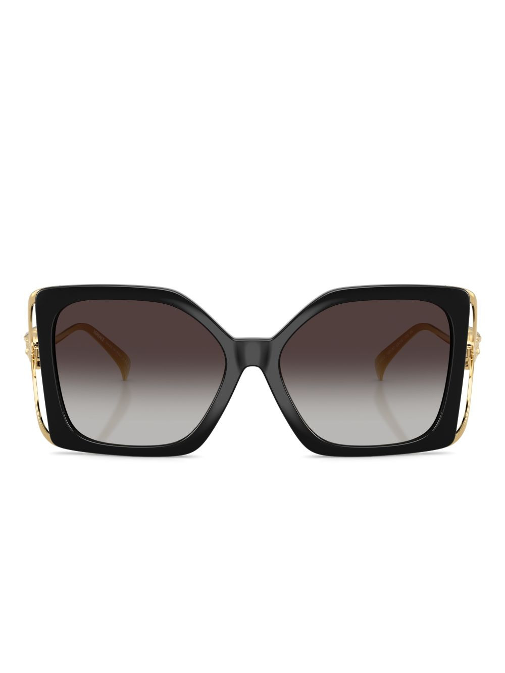square-frame medusa sunglasses Highlights - Black - Gradient lenses - Square frame - Gold-tone detail - Medusa detail - These glasses come with a protective case. Made in Italy Composition Acetate 100%, Metal 100% SIZE & FIT Measurement Bridge Width 0.62 in(1.6 cm) Lens Diameter 2.28 in(5.8 cm)