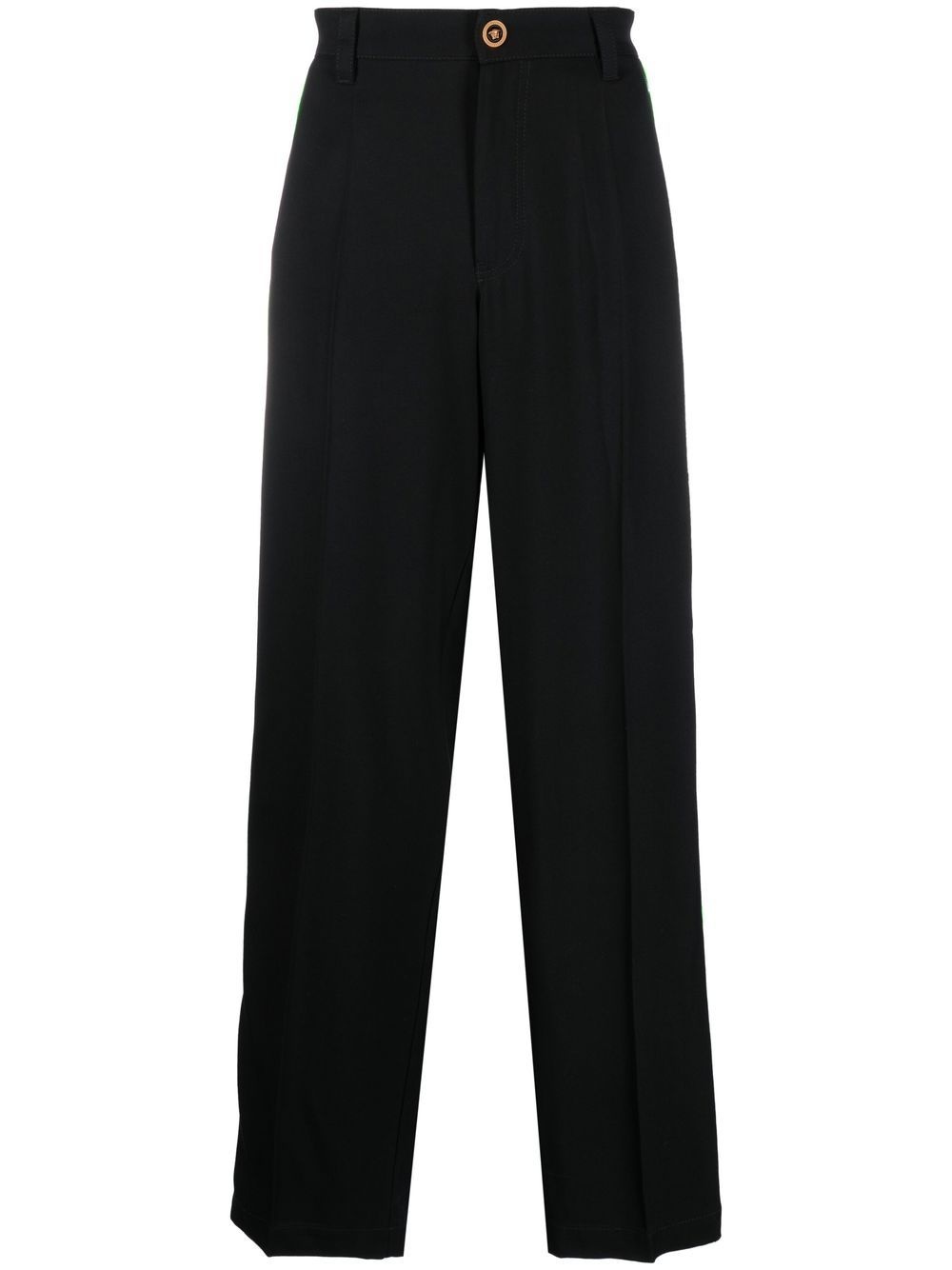 striped-detailing trousers black fluorescent green side stripe detailing elasticated waistband front button fastening straight hem two side inset pockets two rear welt pockets Made in Italy Composition Outer: Viscose 100%, Polyamide 97%, Elastane 3% Lining: Cotton 100% SIZE & FIT Model measurements Height 6 ft 2 in(1.88 m) Bust/Chest 36.61 in(93 cm) Hips 35.82 in(91 cm) Waist 27.95 in(71 cm) FittingInformation This piece fits true to size. We recommend you get your regular size Cut for a loose fit Made with a mid-weight stretch fabric Washing instructions Dry Clean Only