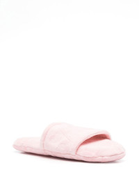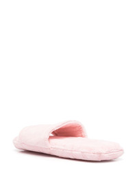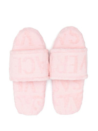 Versace Allover slippers Highlights - Pink cotton terry cotton logo slippers from versace featuring terry-cloth effect, all-over logo print, round toe, flat sole and slip-on style. Made in Italy Composition Cotton 100%