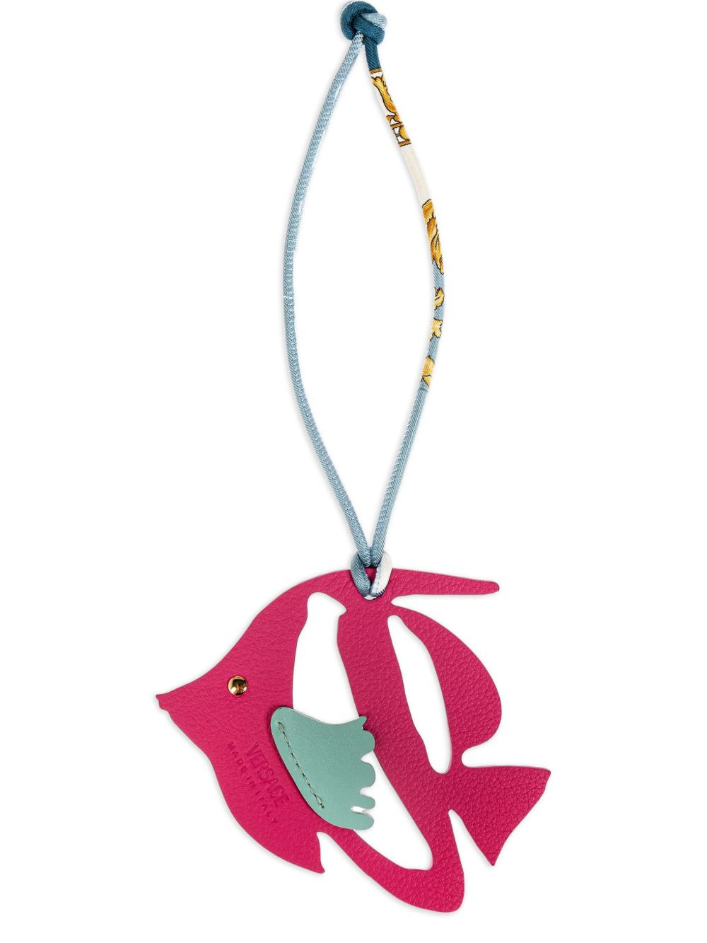 The shape of a fish charm Highlights - Bright pink - Contrasting mint green detail - Decorative ribbon attachment - Designed to add a playful touch Made in Italy Composition Calf Leather 100%, Silk 100%
