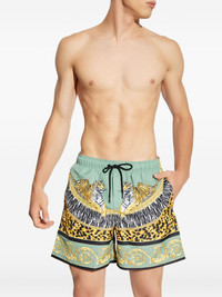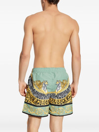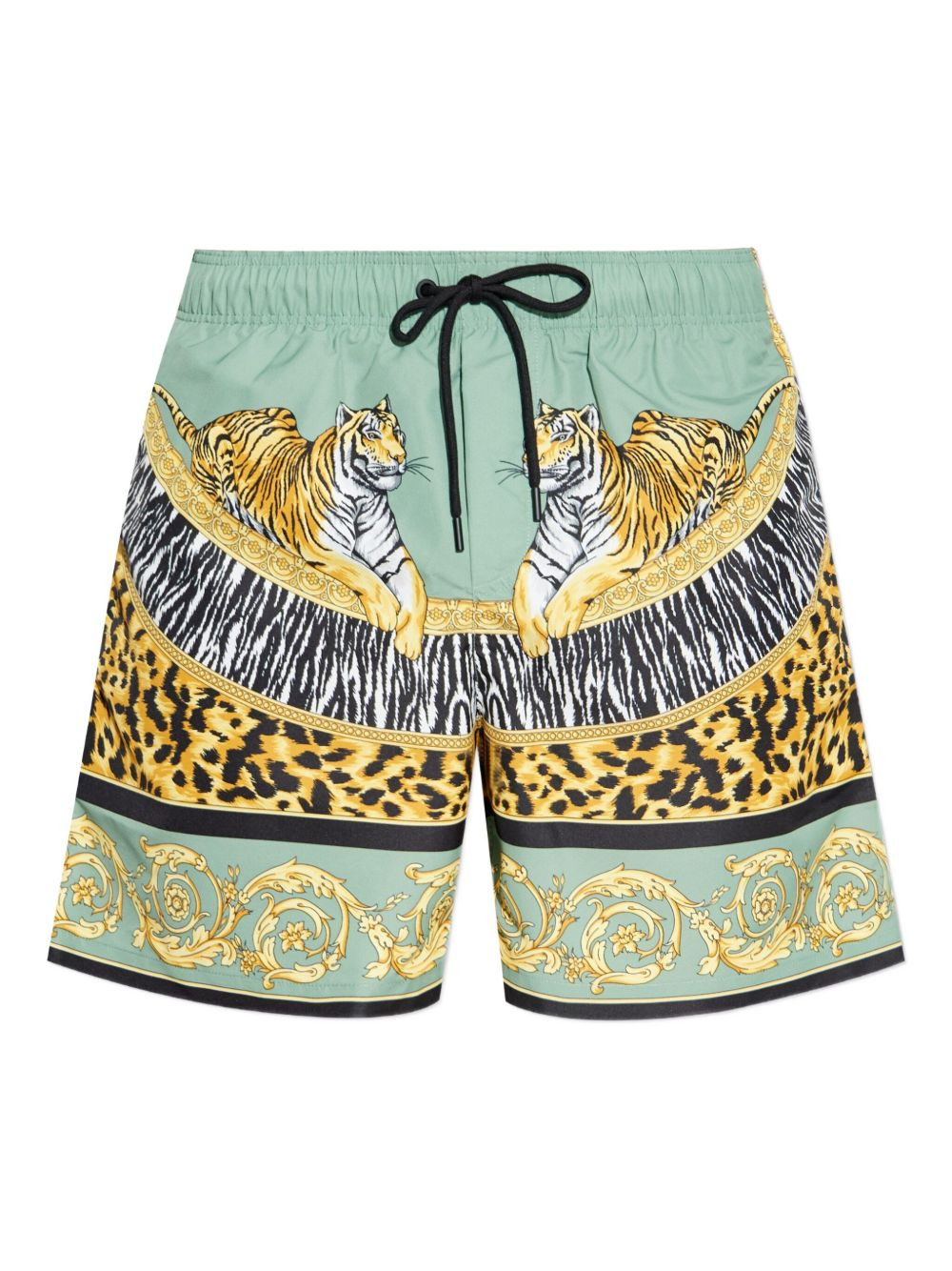 tiger-print drawstring swim shorts Highlights - Light green - Tiger print - Signature barocco print - Drawstring fastening - Waistband - Be mindful to try on swimwear over your own garments. Made in Italy Composition Polyester 100% Washing instructions Read Manufacturer Guidelines