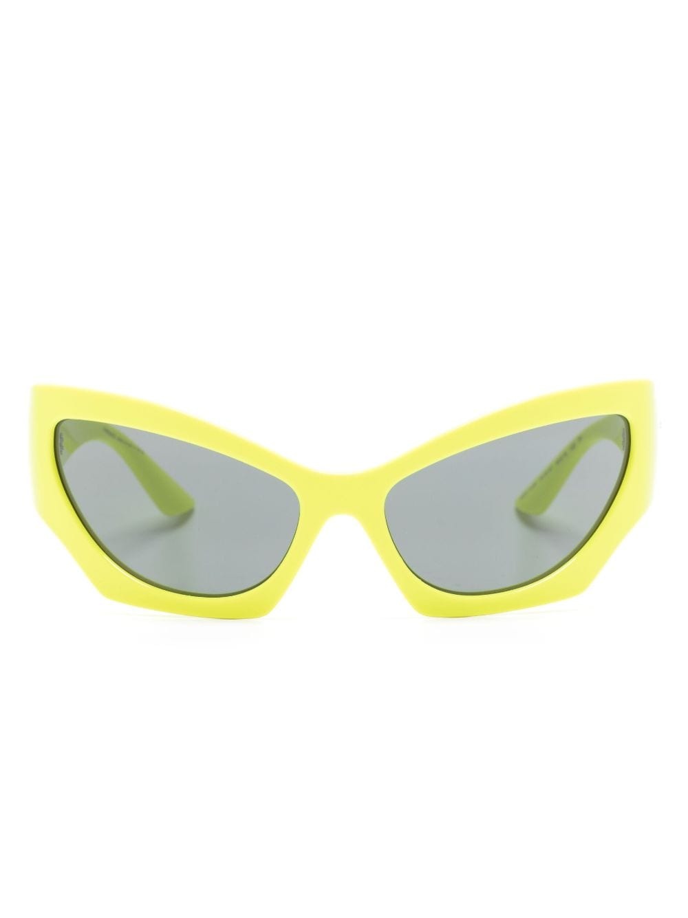 Medusa cat-eye sunglasses Highlights - Fluorescent yellow - Acetate - Cat-eye frame - Grey tinted lenses - Uv-protective lenses - Medusa plaque detail - Raised bridge - Straight arms - Curved tips - These glasses come with a protective case. Made in Italy Composition Acetate 100% SIZE & FIT Measurement Arm Length 4.92 in(12.5 cm) Bridge Width 0.62 in(1.6 cm) Lens Diameter 2.36 in(6 cm) Total Width 5.31 in(13.5 cm)