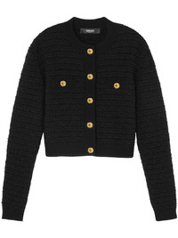 tweed boucle jacket Highlights - Black - Tweed - Boucle design - Ribbed trim - Crew neck - Long sleeves - Two chest welt pockets - Ribbed hem - Front button fastening with signature medusa head buttons Made in Italy Composition Outer: Virgin Wool 80%, Nylon 11%, Cotton 5%, Mohair 4%