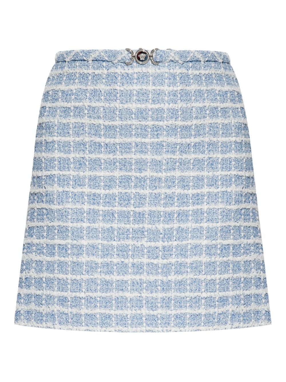 tweed mini skirt Highlights - Light blue - Concealed rear zip fastening - Medusa plaque detail Made in Italy Composition Outer: Cotton 54%, Nylon 20%, Viscose 14%, Polyester 6%, Metallized Polyester 4%, Acrylic 2% Lining: Cupro 100%
